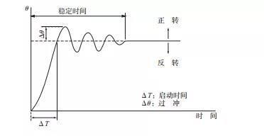 如圖4所示,當一個輸入脈沖施加到步進電機上時,它會顯示出階級性的反應(yīng)特性。馬達在輸入脈沖的作用下,向平衡位置移動時,由于轉(zhuǎn)子的旋轉(zhuǎn)慣量而過度,因此為了平衡,它又反轉(zhuǎn),反轉(zhuǎn)為旋轉(zhuǎn)慣量而下降……這樣往復(fù),經(jīng)過一定的穩(wěn)定時間才能到達平衡位置。因此,步進電機容易產(chǎn)生振動和噪音。對于連續(xù)的脈沖輸入,轉(zhuǎn)子的旋轉(zhuǎn)往往會提前或延遲。如果轉(zhuǎn)子的旋轉(zhuǎn)跟不上輸入脈沖信號,就會失步。